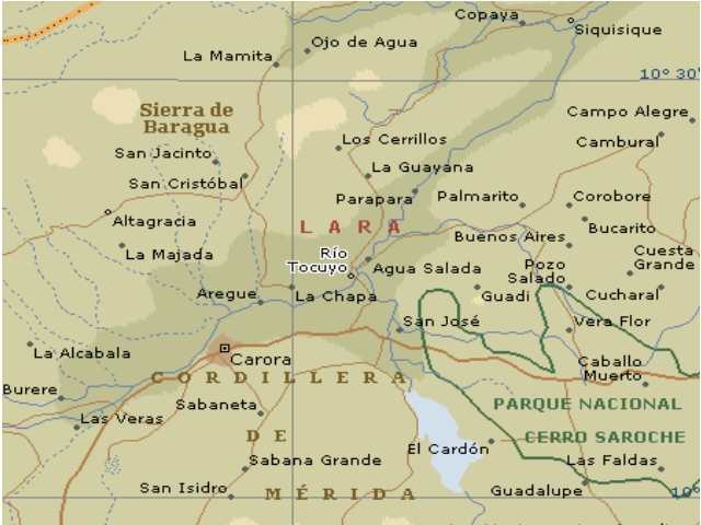Los límites de la parroquia Camacaro, son:Norte: Con la parroquia Espinoza de los Monteros. Este: Con el municipio Urdaneta y Jimenes. Oeste: Con la parroquia Chiquinquirá (aregue) Sur: Con la Parroquia Reyes Vargas (Parapara) Ubicación Geográfica Superficie: 826 Km2 aproximadamente Temperatura: Media: 28°C Latitud: 10° 14' 40' ' Longitud: 69° 55' 50' ' Nivel Pluviométrico: 513,7 mm3 Paisaje predominante: Está conformado por colinas, valles y una extensa vega de los ríos que lo circunscriben. Su topografía la constituyen quebradas y superficies planas. Esta Parroquia se divide en 72 caseríos de los cuales se desatacan:. 1. Caserío Las Flores. 2. Caserío San Marcos 3. Caserío La Peñita. 4. Caserío Agua Salada. 5. Caserío San Antonio. 6. Caserío Santa Inés. 7. Caserío Carioca. 8. Caserío Ollican. 9. Caserío Mote Negro. 10. Caserío Sabaneta. 11. Caserío Siminipuche. 12. Caserío La Caimana. 13. Caserío El Habra. 14. Caserío Los Uvedales 15. Caserío Guaidy Viejo. 16. Caserío Guaidy Nuevo. 17. Caserío Majaneria. 18. Caserío Las Guarabas. 19. Caserío Los Quemados 20. Caserío El Yabito. 21. Caserío Quiriquire. 22. Caserío Bucarito. 23. Caserío Curari. |